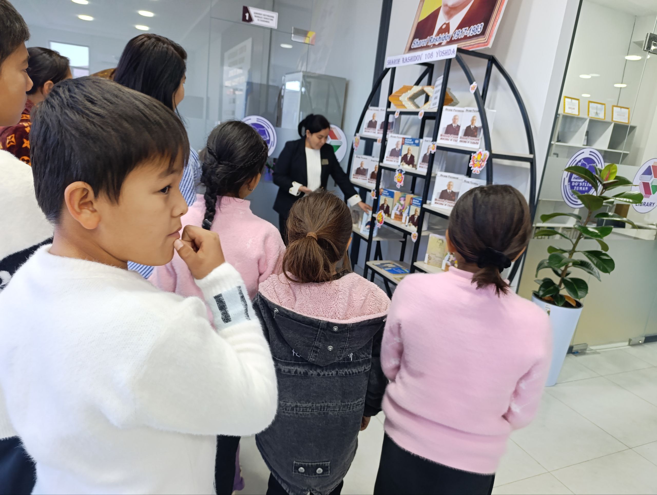 Joriy yilning 6 - noyabr sanasida Do'stlik tuman axborot-kutubxona markazi xodimlari tomonidan Jizzaxlik el suygan davlat arbobi Sharof Rashidov tavalludining 108 yilligi munosabati bilan "Sharof Rashidov Jizzaxning ardoqli farzandi" nomli kitoblar ko'rgazmasi tashkil etilib, ushbu koʻrgazmaga kutubxonaga tashrif buyurgan kitobxonlar jalb etildi. Markaz xodimlari tomonidan yozuvchining hayot yoʻli, ijodiy faoliyati va asarlari haqida kitobxonlarga ma'lumotlar berib oʻtildi.