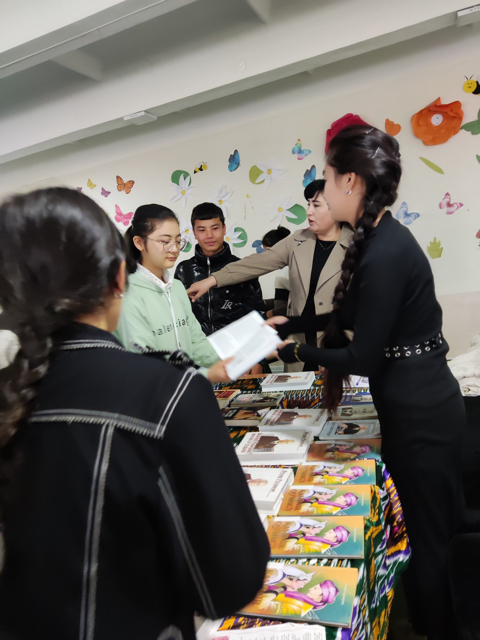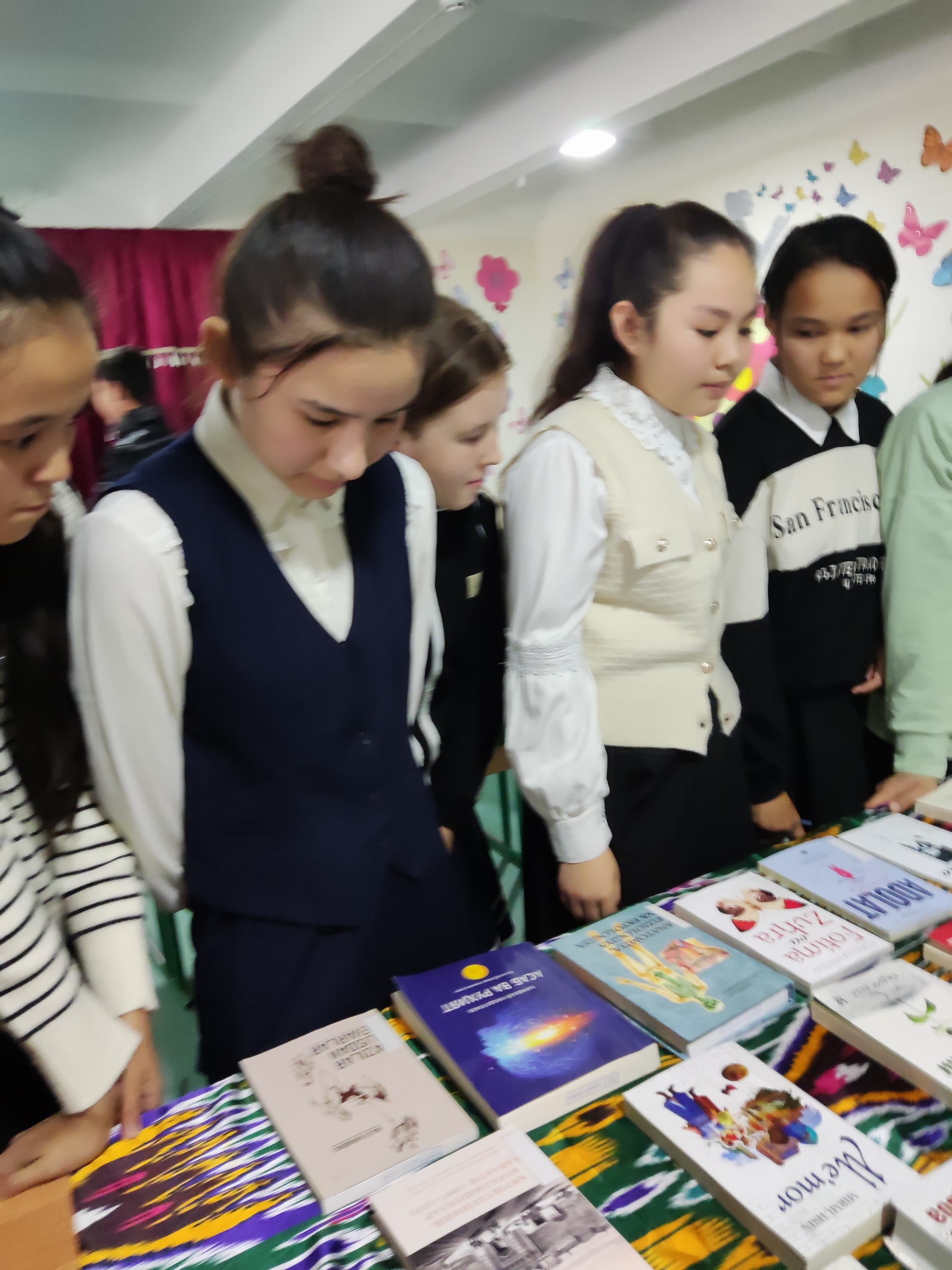14-umumiy o'rta ta'lim maktabining o'quvchilari uchun yangi adabiyotlar ko'rgazmasi tashkil qilindi.