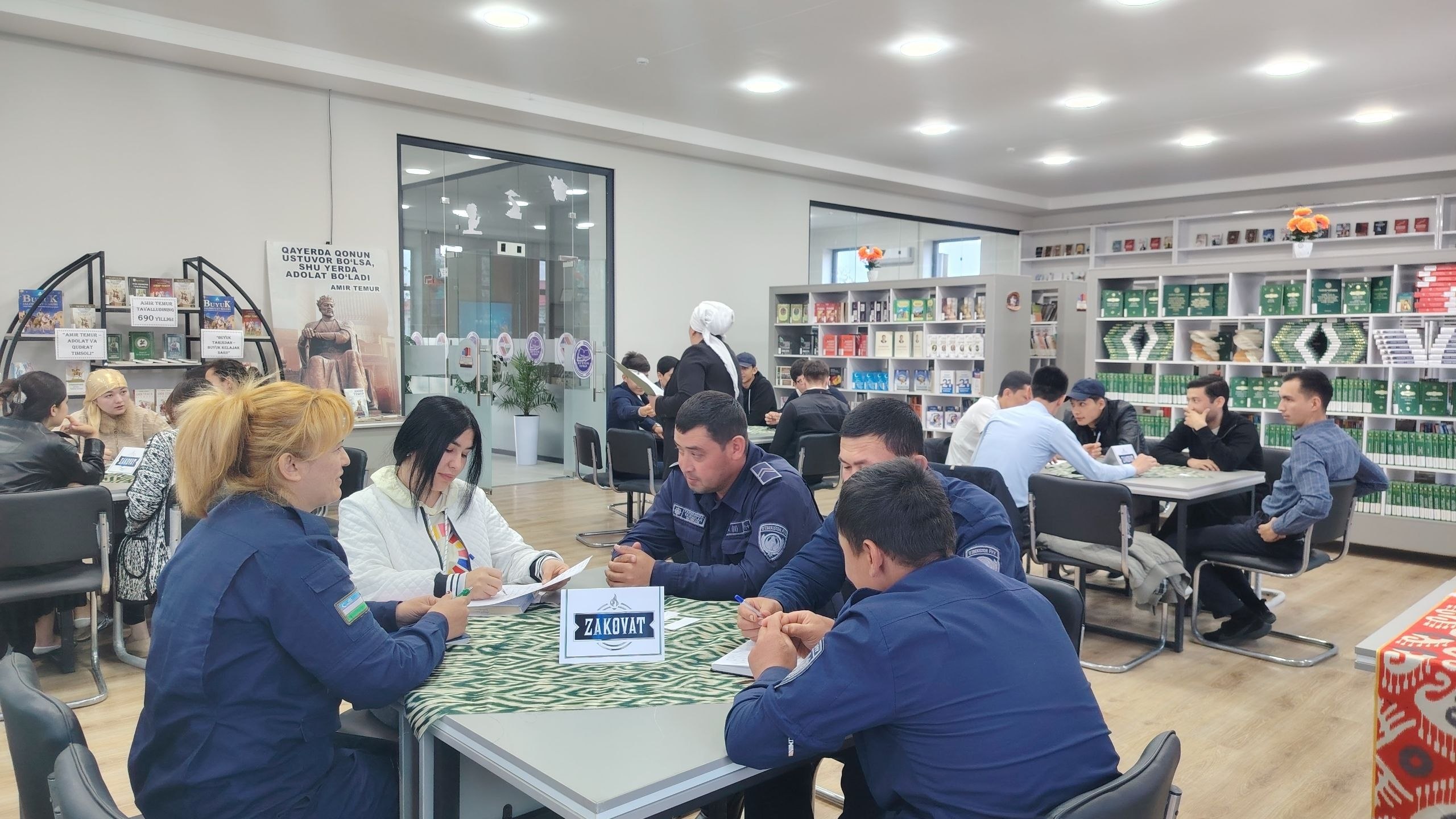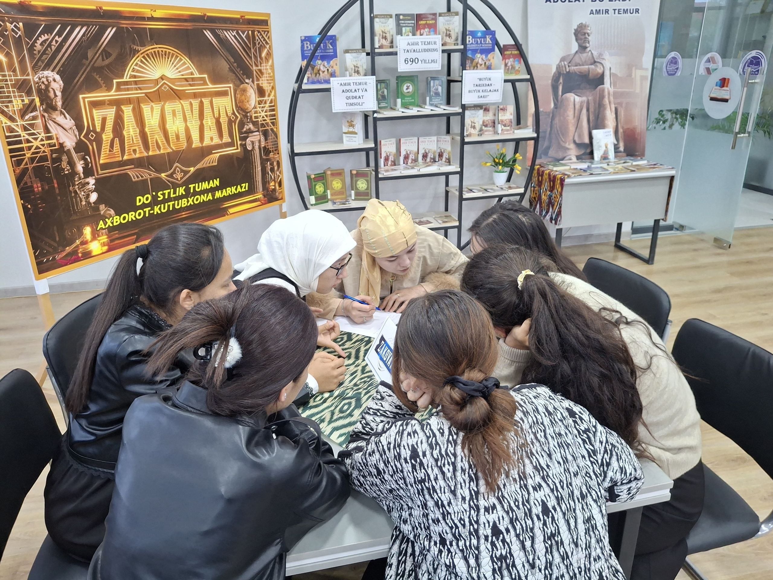 Buyuk davlat arbobi, ilm-fan, madaniyat va san’at homiysi Sohibqiron Amir Temur tavalludining 690 yilligini keng nishonlash to‘g‘risida O‘zbekiston Respublikasi Prezidentining 2026-yil 5-fevraldagi PQ-46-sonli qarori ijrosini ta’minlash maqsadida Respublika Ma’naviyat va ma’rifat markazi Do‘stlik tuman bo‘linmasi bilan hamkorlikda joriy yilning 8-aprel kuni Axborot-kutubxona markazida Do‘stlik tumani tashkilotlari xodimlari hamda o‘quvchi-talabalar ishtirokida “Adolat davlatning asosi va hukmdorlarning shioridir” nomli zakovat intellektual o‘yini tashkil etildi.