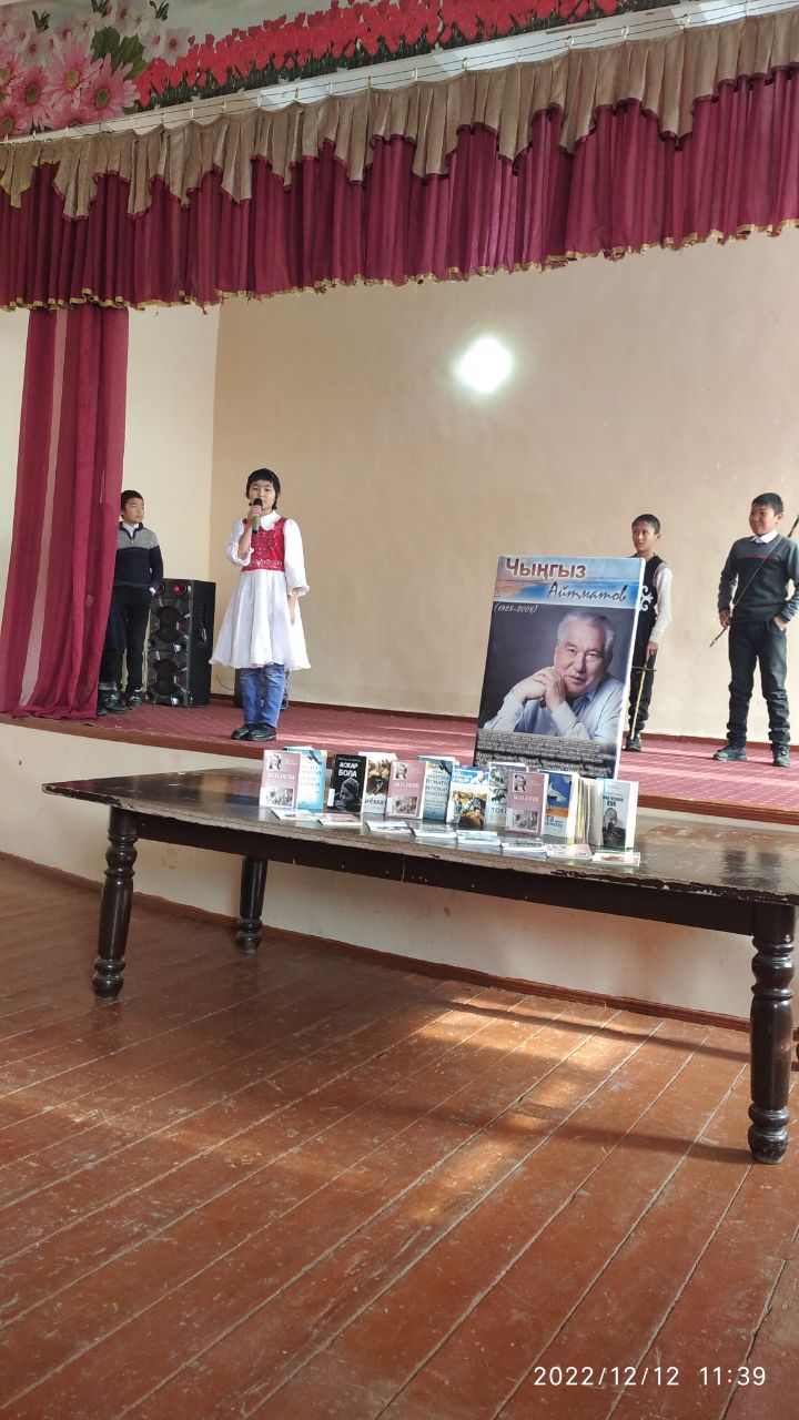 Do'stlik tuman Axborot-kutubxona markazi xodimlari tamonidan Chingiz Aytmatovning tavalludi munosabati bilan 5-umumiy o`rta ta'lim maktabida tadbir tashkil qilindi. Dastlab tadbirda yozuvchining hayoti va ijodi haqida ma'lumotlar berildi. So`ng tadbir kitoblar ko`rgazmasi, turli raqs va sahnaviy ko`rinishlar bilan davom etdi.