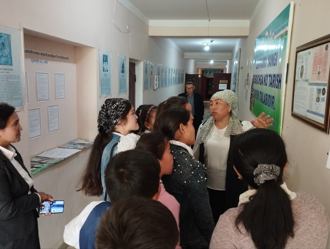 2023-yil 3-aprel sanasida Do‘stlik tumani Axborot-kutubxona markaziga Navro‘z MFY dagi 10-umumiy o‘rta ta‘lim maktabi targ‘ibotchisi Gulmurodova Ozoda boshchiligida ijodkor o‘quvchilari tashrif buyurdi.Tashrif davomida kutubxona bo`ylab sayohat tashkil qilinib, unda o`quvchilar kutubxona bilan tanishib chiqdi. Kutubxonada mavjud adabiyotlar, tashkil qilingan ko`rgazmalar, barcha xizmatlarda olib borilayotgan ishlar yaqindan tanishtirildi .Ularni bilimini tekshirish maqsadida sayohat davomida qiziqarli savol -javoblar, tez aytishlar, maqollar so`raldi. Sayohat o`quvchilarga birdek manzur bo`ldi. .jpg)