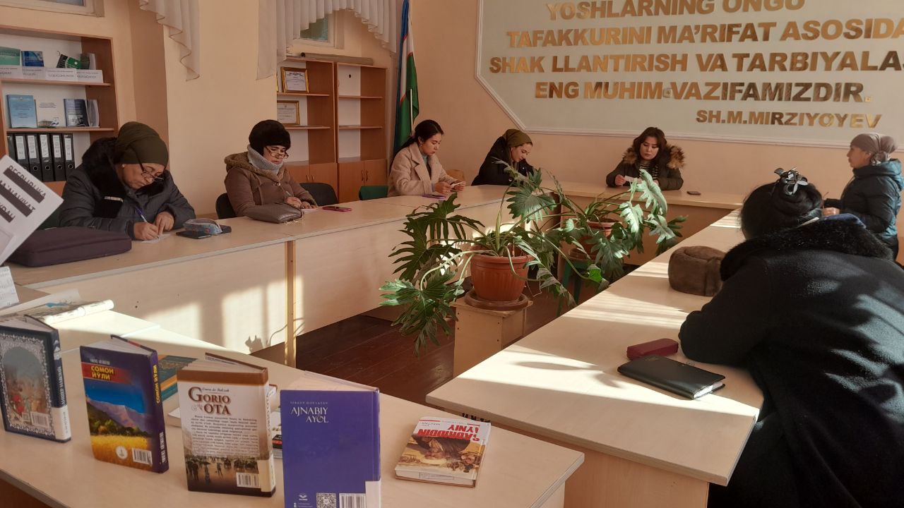 Do'stlik tuman Axborot-kutubxona markazi tomonidan Do'stlik tuman 1- umumiy o'rta ta'lim maktabi o'qituvchi ayollari ishtirokida "Kitobxon onalar" kuni munosabati bilan davra suhbati va kitoblar ko`rgazmasi tashkil qilindi..jpg)