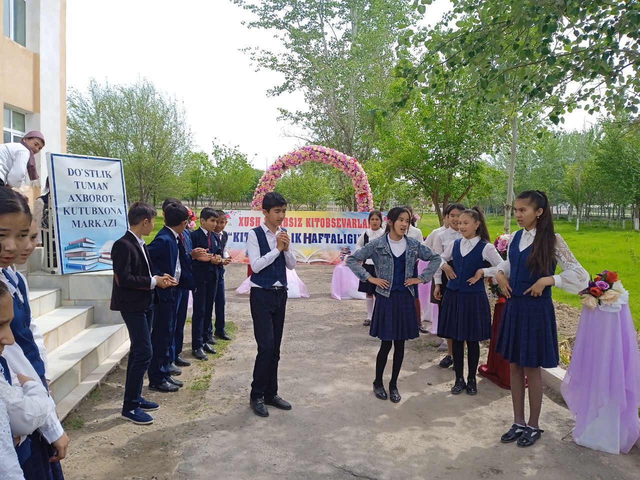 O‘zbekiston Respublikasi Vazirlar Mahkamasining “2020-2025 yillarda kitobxonlik madaniyatini rivojlantirish va qo‘llab-quvvatlash milliy dasturini tasdiqlash to‘g‘risida” 2020-yil 14-dekabrdagi 781-sonli qarori ijrosini ta’minlash maqsadida Alisher Navoiy nomidagi O‘zbekiston Milliy kutubxonasi hamda hududiy axborot-kutubxona markazlarida “Kitobxonlik haftaligi” tashkil etilmoqda. Shu jumladan Do`stlik tuman Axborot-kutubxona markazida ham kitobxonlik haftaligi tadbirlariga start berildi. Tadbirda Do`stlik tuman ma`naviyat va ma`rifat markazi bo`linmasi mutaxassisi D.Yo`ldosheva, AKM mutaxassisi B.Sattorov, umumiy o`rta ta`lim maktabi kutubxonachilari hamda maktab o`quvchilari ishtirok etdilar. Tadbir davomida "Eng chiroyli milliy raqs" ko`rik tanlovi bo`lib o`tdi. Tanlovda o`quvchilar o`zlarining milliy raqslari bilan ishtirok etib, mahoratini yana bir bora namoyon etdilar. Shuningdek iqtidorli bir guruh o`quvchilar tomonidan milliy laparlar ijro qilingani barchaga birdek manzur bo`ldi. Tadbirda 45 nafar ishtirokchi qatnashdi.