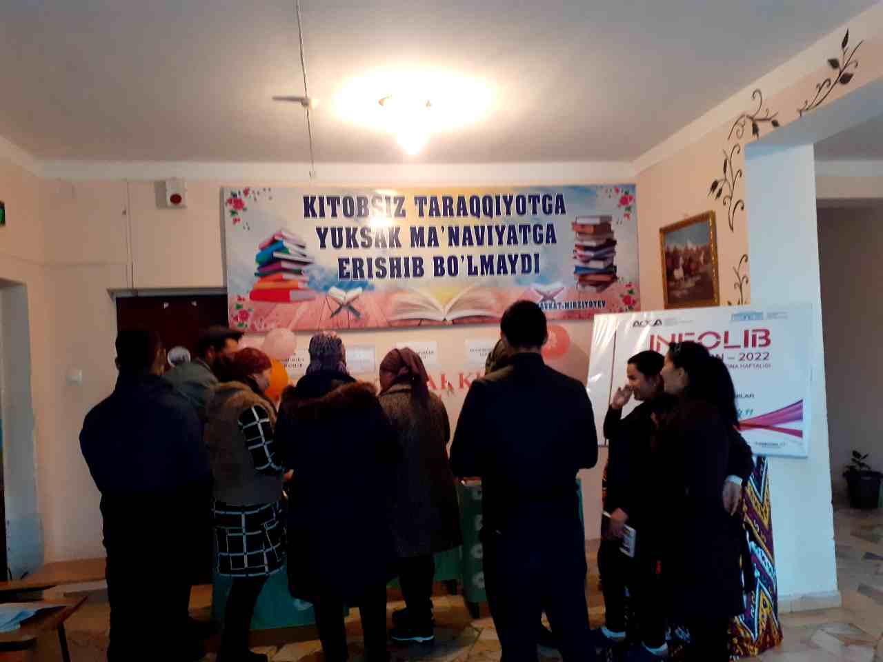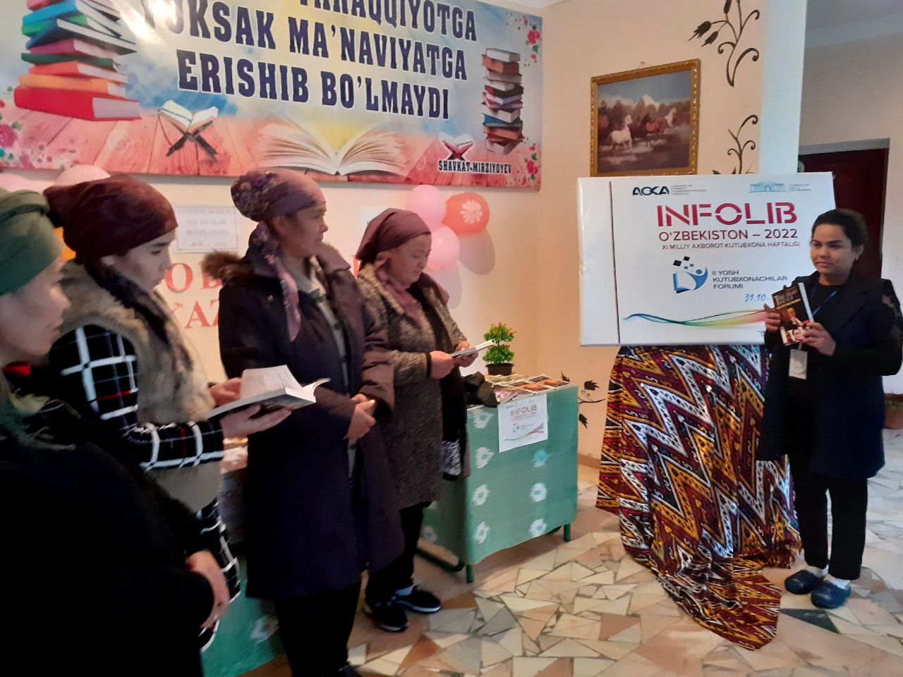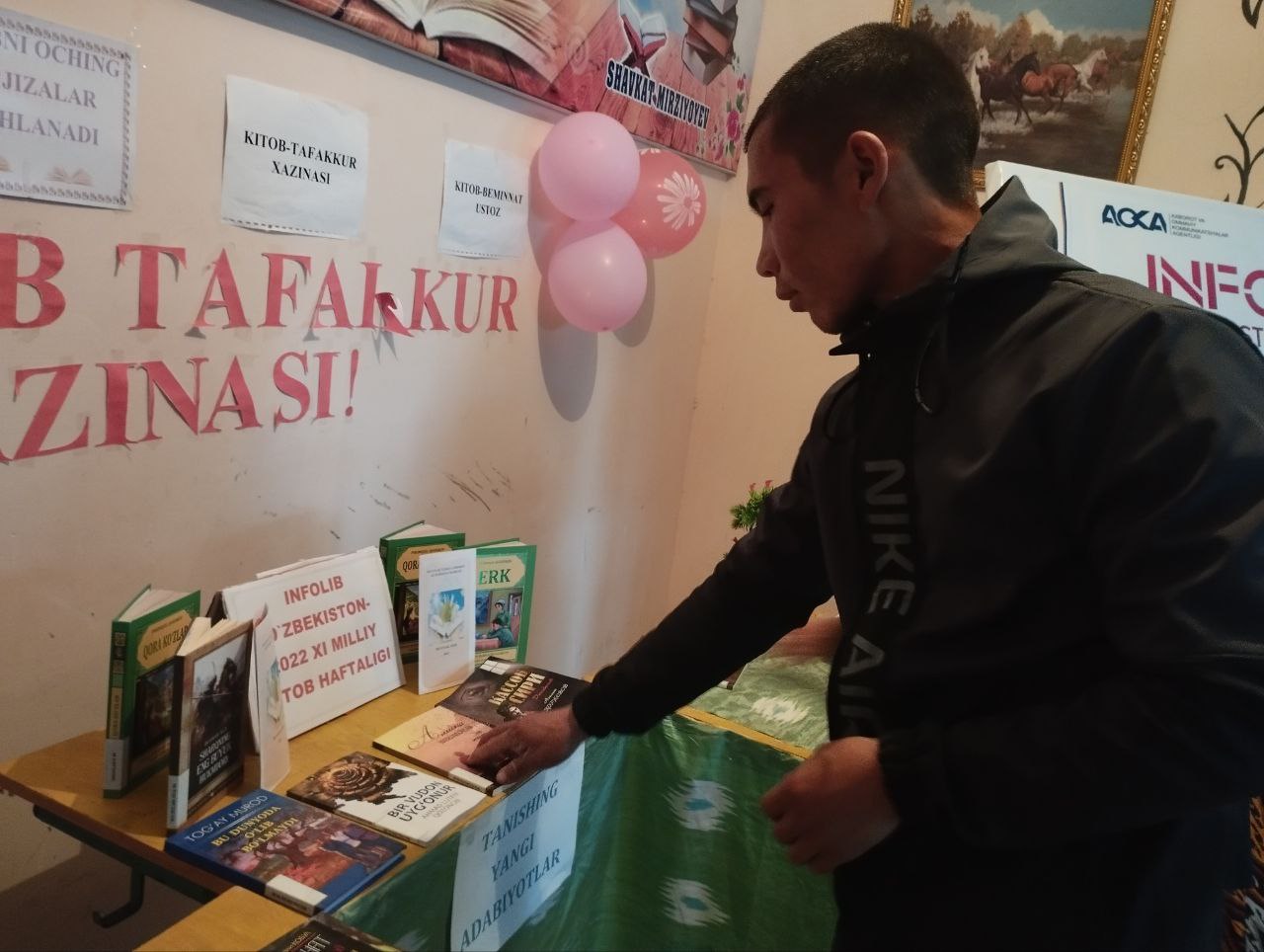 Do'stlik tuman Axborot-kutubxona markazi xodimlari tomonidan INFOLIB O'ZBEKISTON-2022 XI Milliy Axborot-kutubxona haftaligining 3-kunida faol kitobxonlar ishtirokida "Kutubxonaning kuzgi tuhfasi" nomli ko'rgazma tashkil qilindi.Ko'rgazmada Nurali Qobulning "Tavqi la'nat tamg'asi" nomli asarining taqdimoti tashkil qilindi.