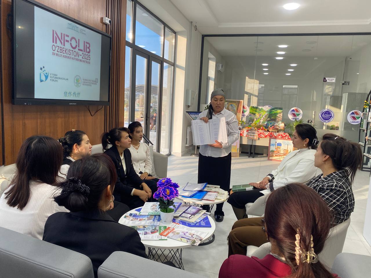 Joriy yilning 12-noyabr sanasida Do'stlik tuman axborot-kutubxona markazi Abonamentlar va foydalanuvchilarga xizmat ko'rsatish xizmati rahbari Zarifa Qambarova tomonidan "Infolib O'zbekiston -2025" XIV milliy axborot-kutubxona haftaligi doirasida Aholiga axborot-kutubxona xizmati ko'rsatishni yanada takomillashtirish va asosiy xujjatlarni yuritish to'g'risida mahorat darsi tashkil qilindi.
