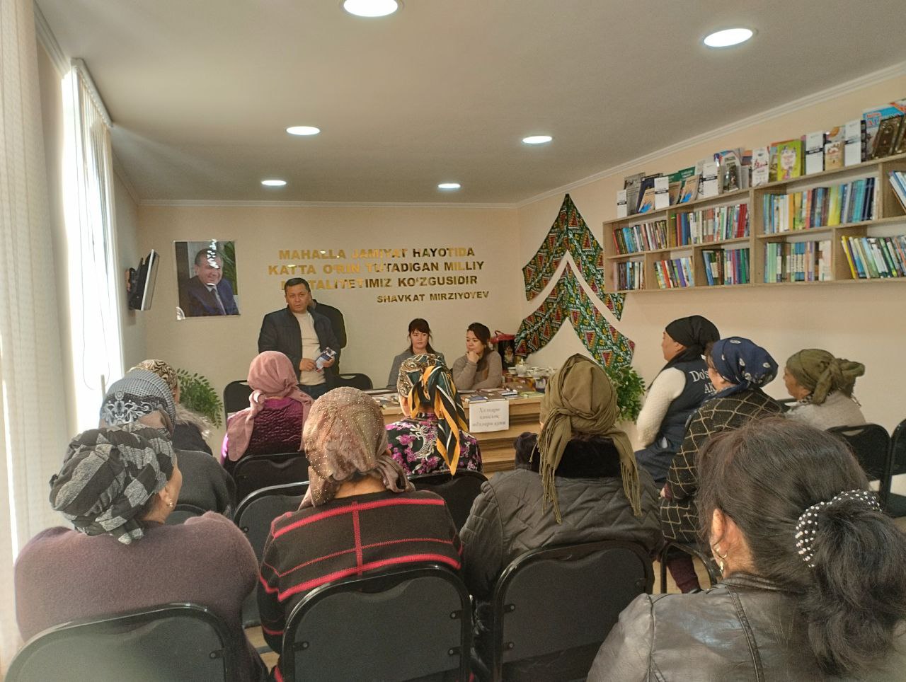 Do‘stlik tuman Axborot-kutubxona markazi xodimlari tomonidan Do‘stlik tuman Navro'z MFY faol ayollari ishtirokida "15-oktabr -Xalqaro qishloq ayollari kuni" ga bag'ishlangan "Mehnatda ulug‘langan ayol" nomli davra suhbati hamda adabiyotlar ko'rgazmasi tashkil qilindi.jpg)