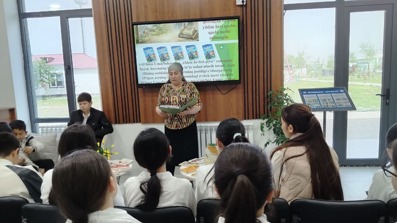 Joriy yilning 17-aprel sanasida “Kitobxonlik haftaligi” doirasida 1-umumiy o‘rta ta’lim maktabi bilan hamkorlikda o‘zbek adabiyotining iste’dodli namoyandasi O‘lmas Umarbekov qalamiga mansub “Odam bo‘lish qiyin” asariga bag‘ishlangan adabiy taqdimot yuqori saviyada tashkil etildi.