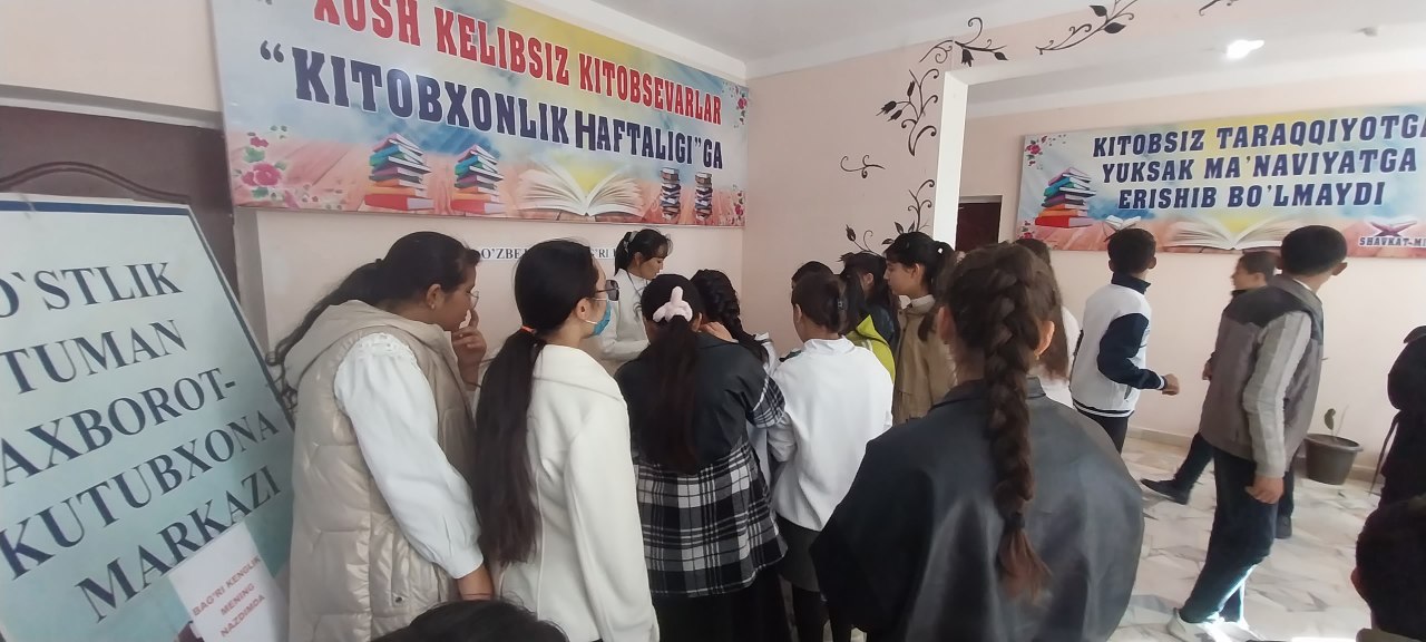 Do'stlik tuman axborot-kutubxona markazi Fondlarni to'ldirish, saqlash va qayta ishlov berish xizmati xodimlari tomonidan "O'zbekiston bag'ri keng diyor" nomli ko'rgazma tashkil qilindi. Ko'rgazmada 1-umumiy o`rta ta`lim maktabi o`quvchilari ishtirok etishdi va ularga Gabriel Garsia Markesning "Yolg'izlikning yuz yili " kitobi taqdimot qilinib, asari haqida sharhlar berib o'tildi.