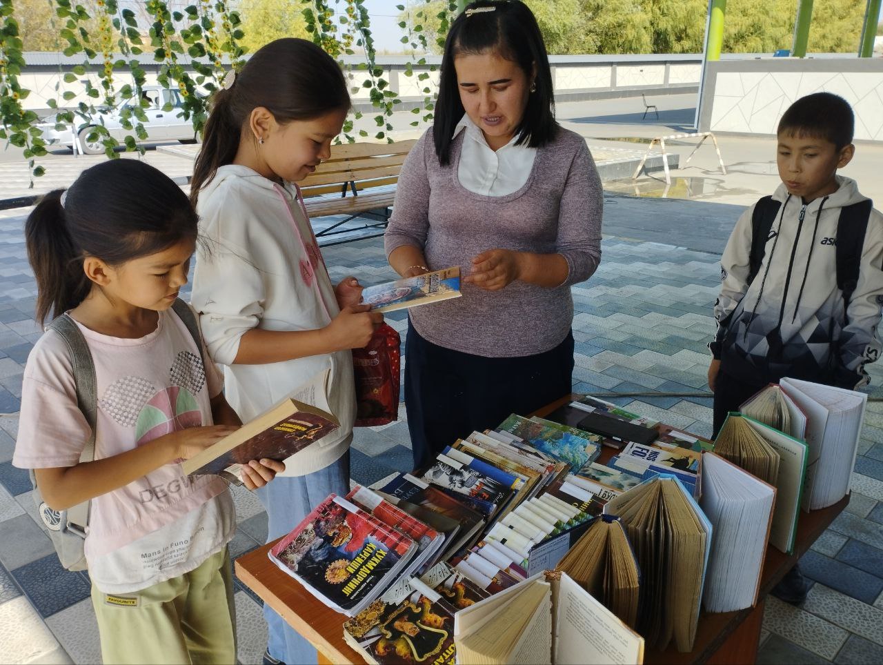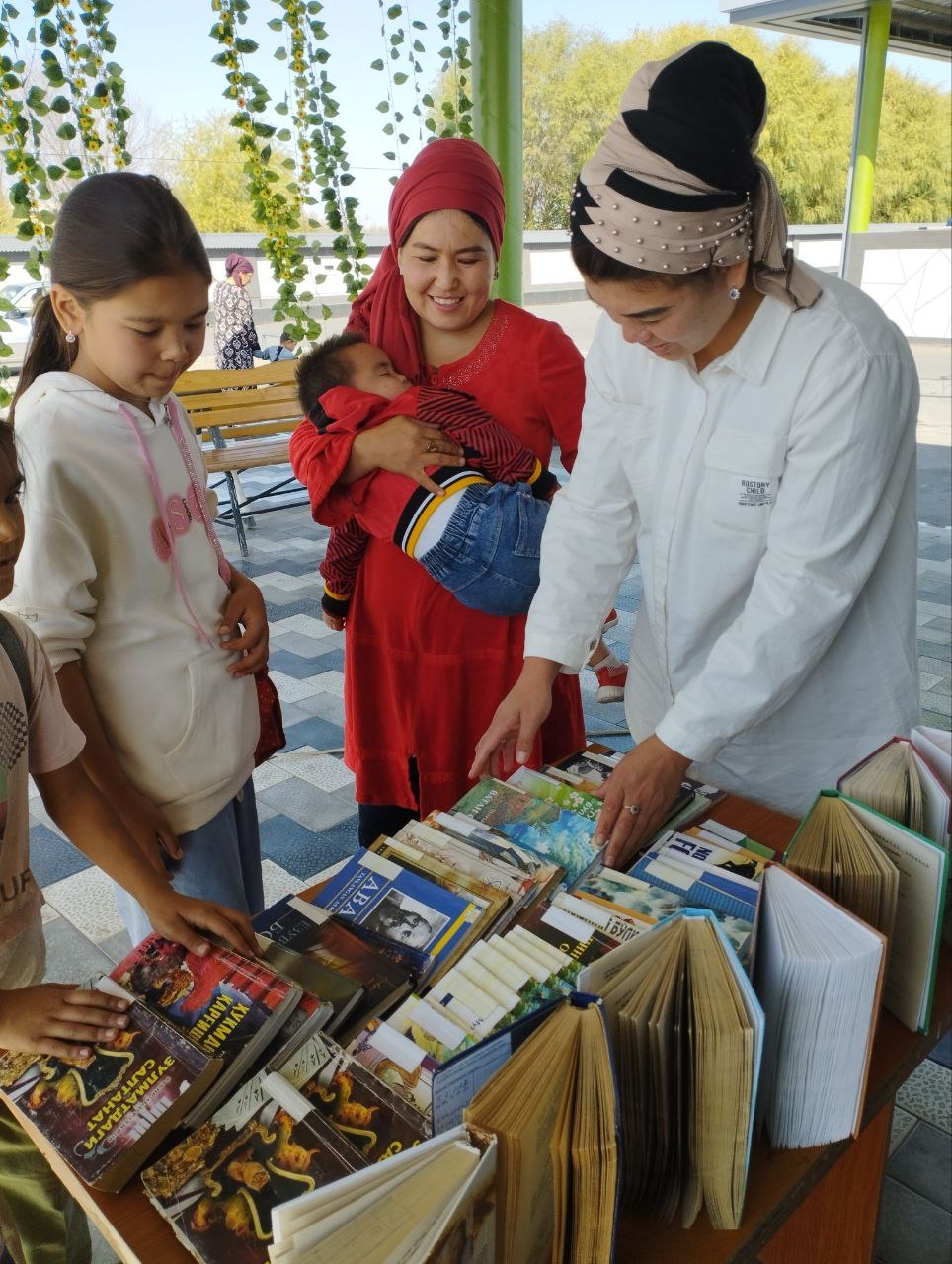 "Ochiq osmon ostida kutubxona" shiori ostida kitoblar ko`rgazmasi tashkil qilindi.
