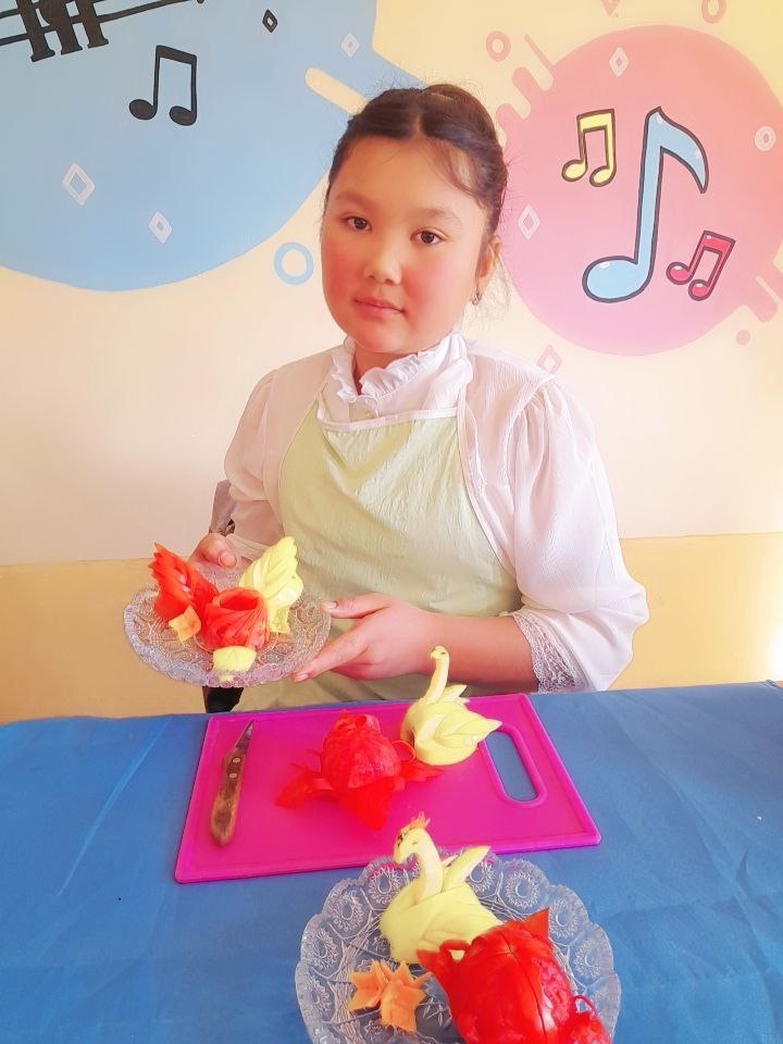 "INFOLIB O'BEKISTON-2023" XII Milliy axborot-kutubxona haftaligi va "Yosh kutubxonachilar" III forumining 5 - kunida Mevazor MFYda joylashgan 15 - umumiy o`rta ta'lim maktabining chaqqon qizlari doirasida "Sehrli qo`llar" nomli tadbir tashkil qilindi. Tadbirda qizlar o`zlarining karvin sohasidagi mahoratlarini meva va sabzavotlarda ko`rsatib berishdi.