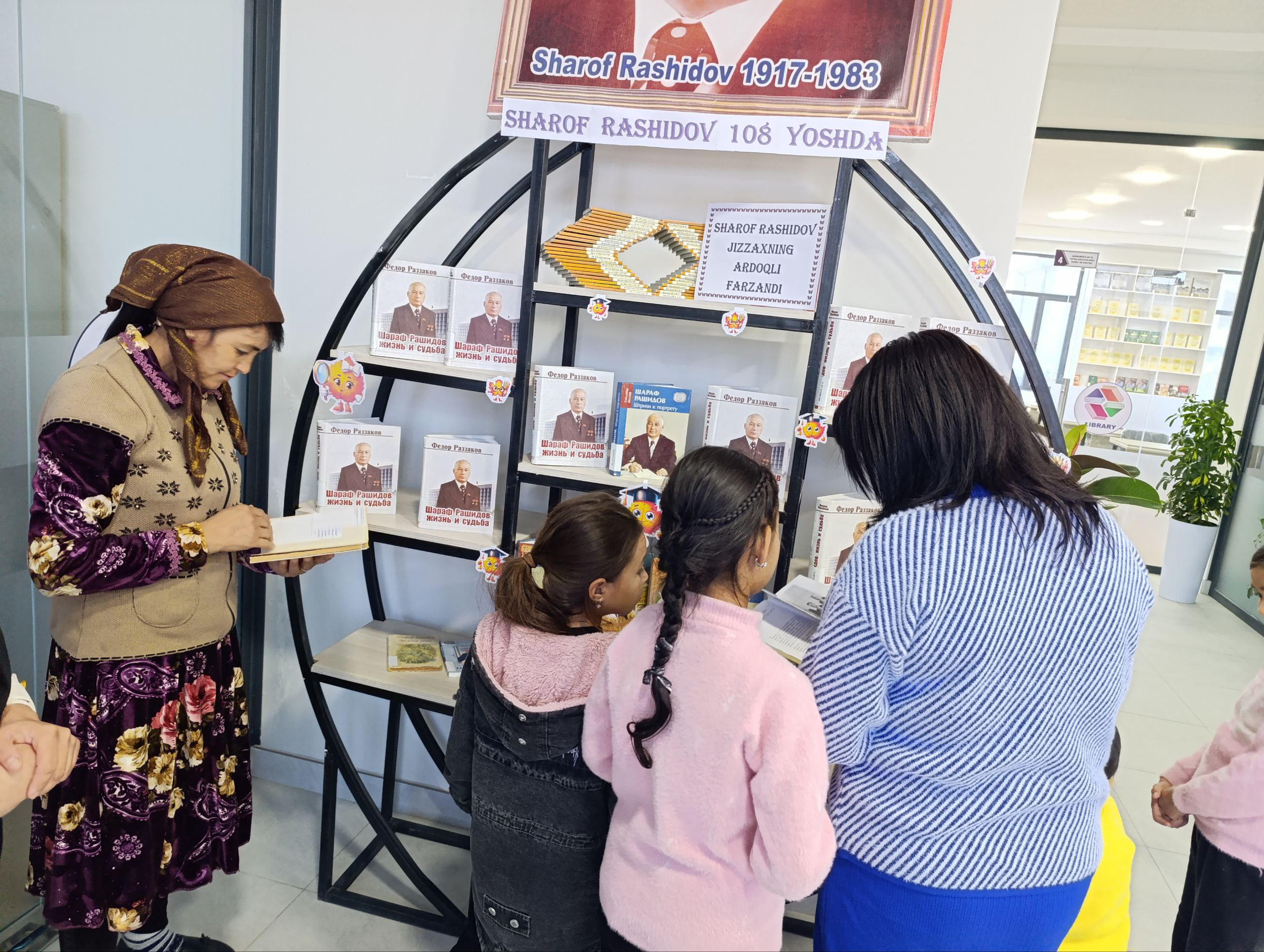 Joriy yilning 6 - noyabr sanasida Do'stlik tuman axborot-kutubxona markazi xodimlari tomonidan Jizzaxlik el suygan davlat arbobi Sharof Rashidov tavalludining 108 yilligi munosabati bilan "Sharof Rashidov Jizzaxning ardoqli farzandi" nomli kitoblar ko'rgazmasi tashkil etilib, ushbu koʻrgazmaga kutubxonaga tashrif buyurgan kitobxonlar jalb etildi. Markaz xodimlari tomonidan yozuvchining hayot yoʻli, ijodiy faoliyati va asarlari haqida kitobxonlarga ma'lumotlar berib oʻtildi.