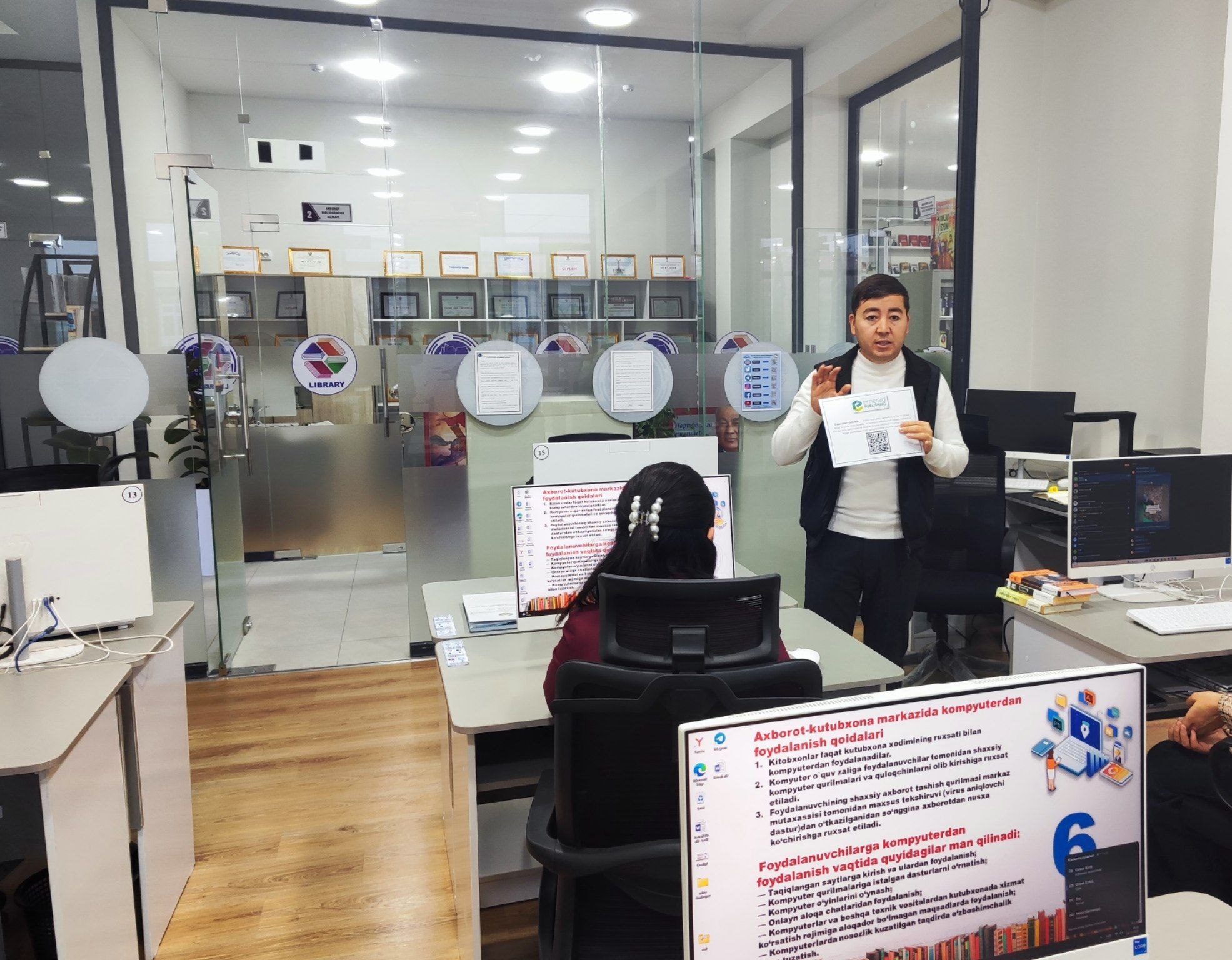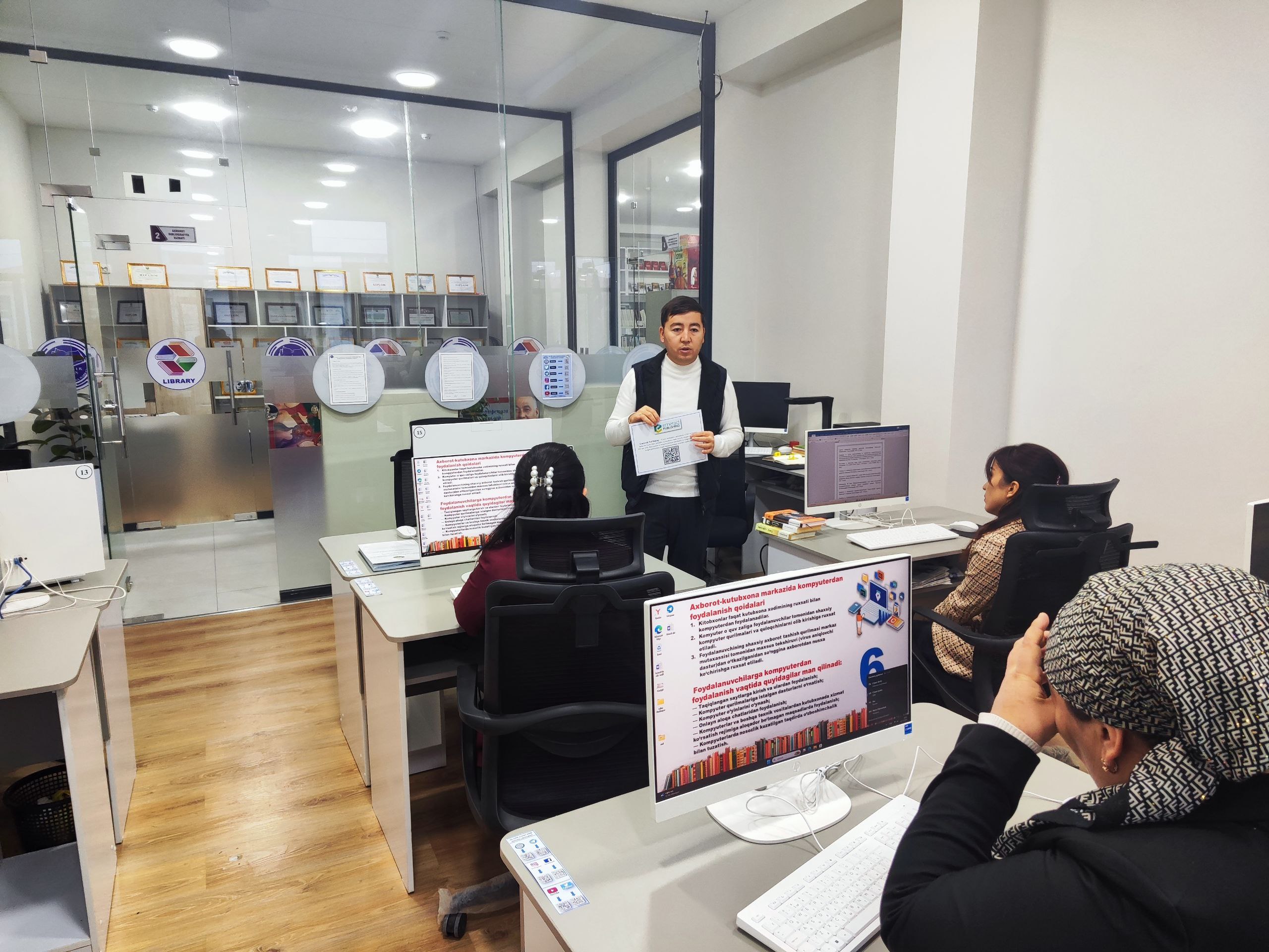 Joriy yilning 5-dekabr kuni Doʻstlik tuman axborot -kutubxona markazi axborot kommunikatsiya texnologiyalari va raqamlashtirish xizmati tomonidan TAKM xodimlarining kompyuter savodxonligini oshirish maqsadida navbatdagi mahorat darsi boʻlib oʻtdi. Unda xorijiy bazalardan foydalanish tartibi, mavjud bazalar roʻyxati haqida tushunchalar berib oʻtildi. Shuningdek kitobxon oʻquvchilarga kutubxona faoliyati bilan tanishtirish davomida ushbu xorijiy bazalar haqida ham ma'lumotlar aytib oʻtish alohida ta'kidlab oʻtildi.Xodimlar ham oʻzlarining qiziqtirgan savollarini berib, xorijiy bazalar boʻyicha tushunmagan savollariga javob oldilar.