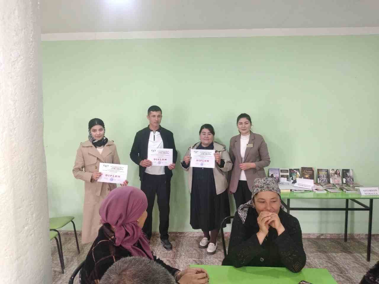 V Respublika kitobxonlik haftaligining 2-kunida rejalashtirilgan "Kitobxon mahalla" tanlovi Do'stlik tumanining eng ilg'or mahallalaridan biri bo'lgan Qahramon MFY tashkil qilindi.
