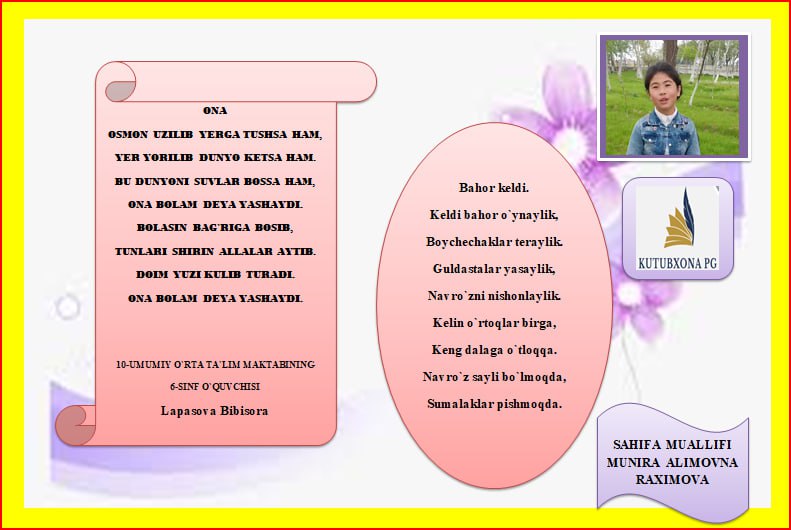 Lapasova Bibisoraning o`z ijodidan namunalar.